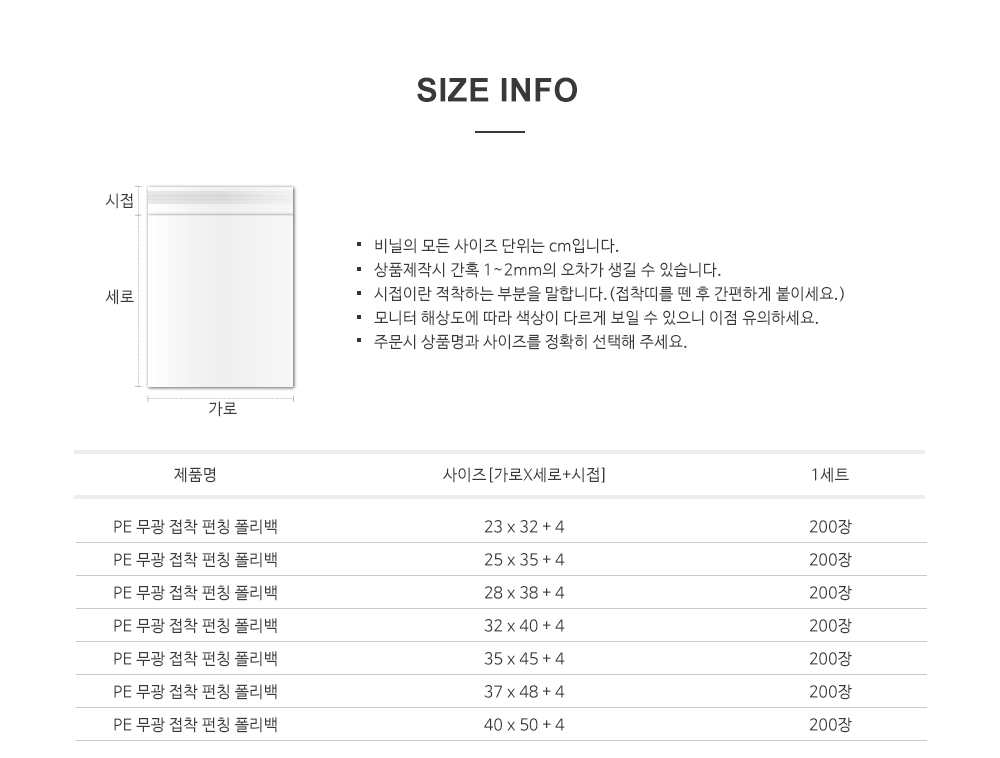 PE무광폴리백(접착식펀칭/37*48/200매)