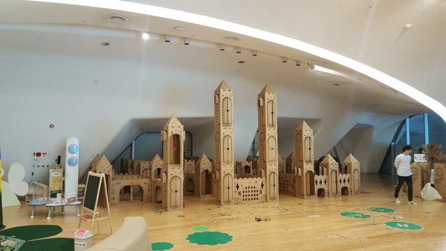 놀이와 디자인, 놀이와 교육의 융합, 신나는 감각놀이가 있는 디키디키(동대문 디자인플라자 배움터 4F)초대형 골판지 메가캐슬 미로 설치ANBOX 아트보드시리즈는 아이들의 창의력 개발을 위해 만들기와 그리기의통합적인 조형과정과 놀이를 접목한 새로운 개념의 플랫폼 토이입니다.
