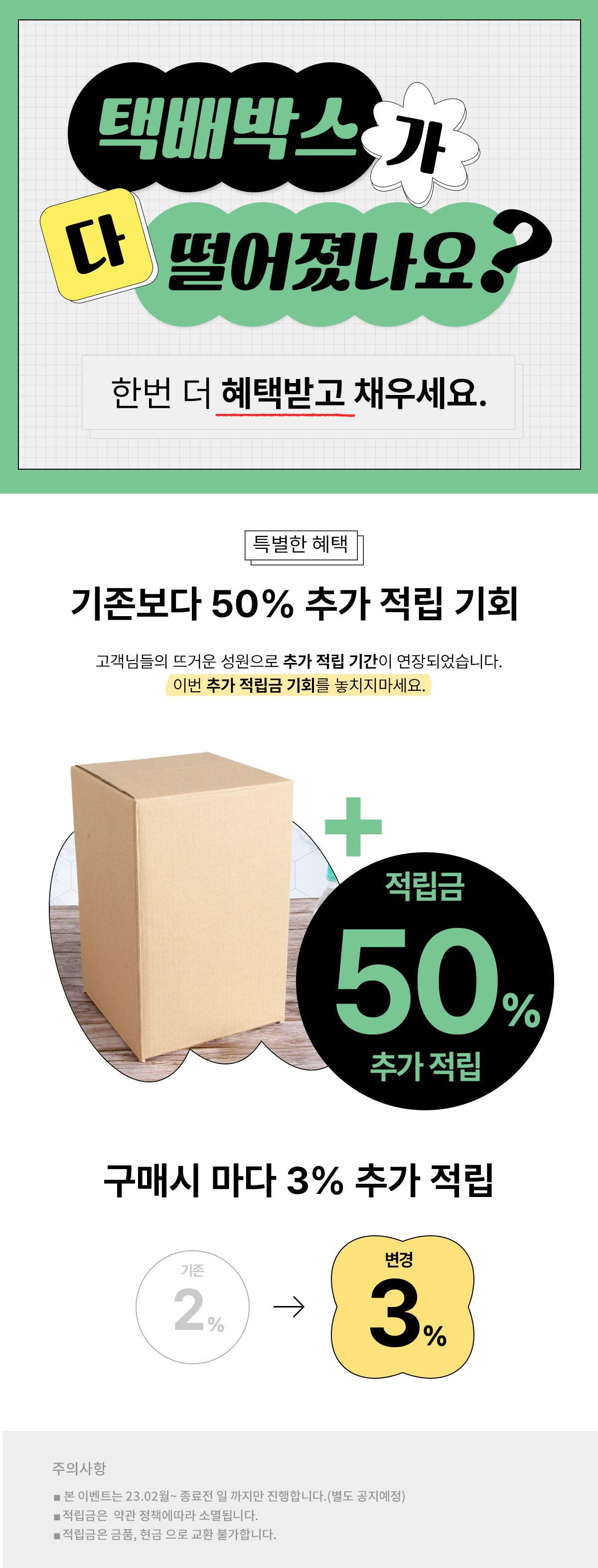 [공지사항] 박스 떨어지셨나요? 50% 더 받고 채우세요!